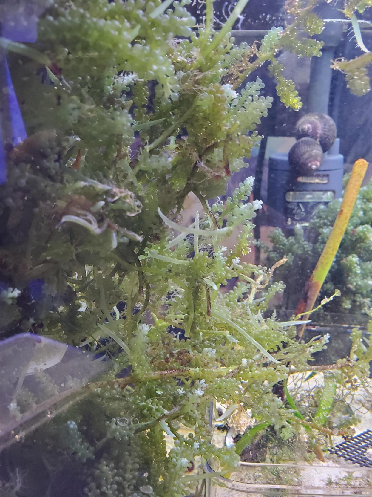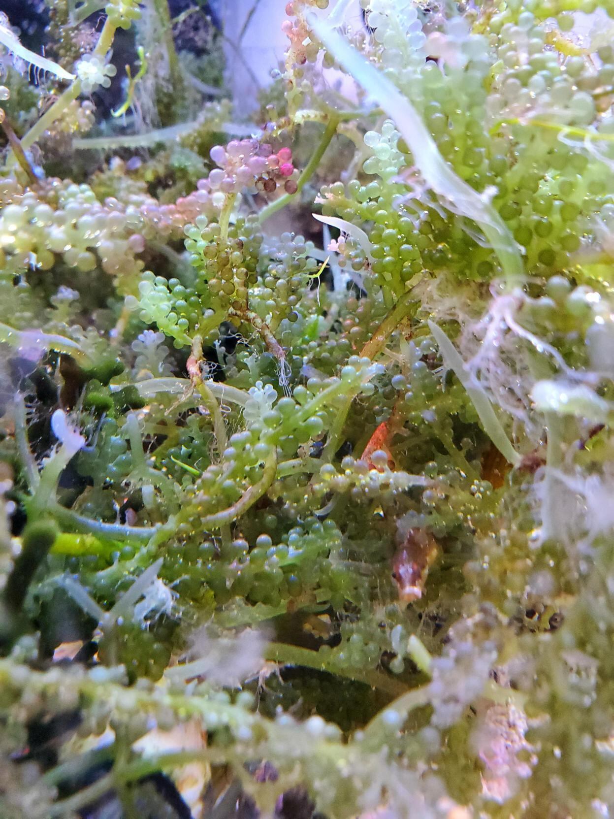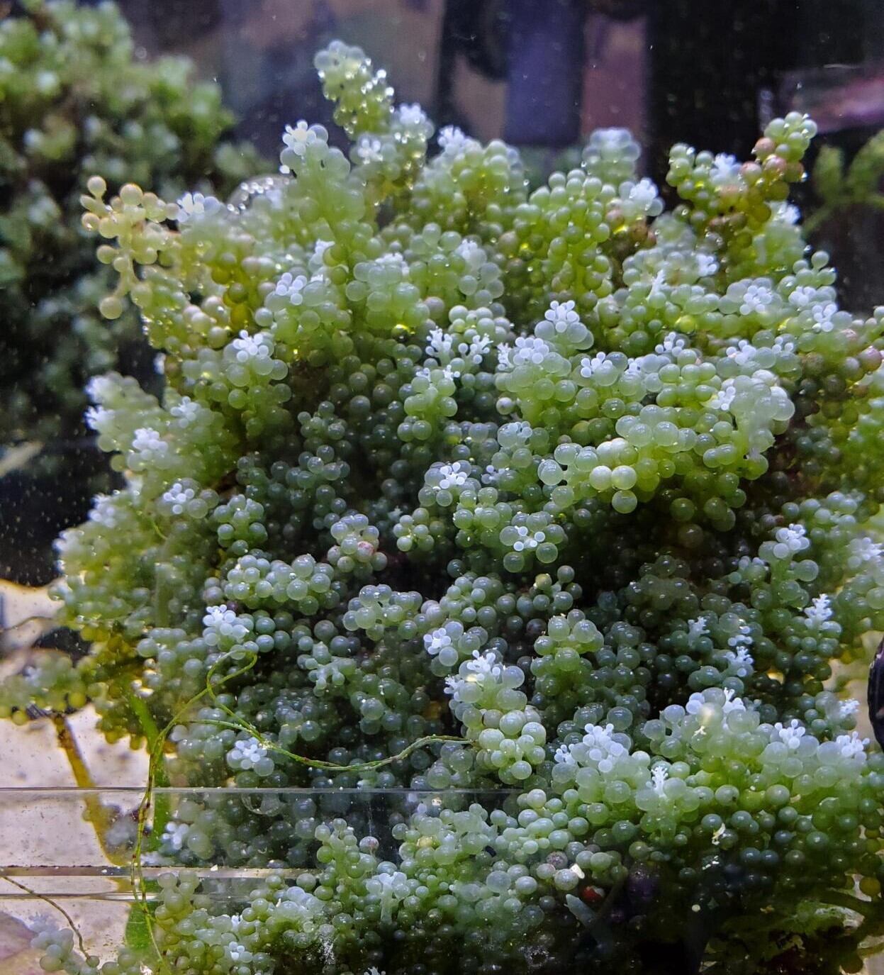 水槽の浄化槽役: 海ぶどうは成長過程で水槽内の余分な硝酸塩やリン酸塩を吸収します。コケの抑制や水質改善に役立ちます。