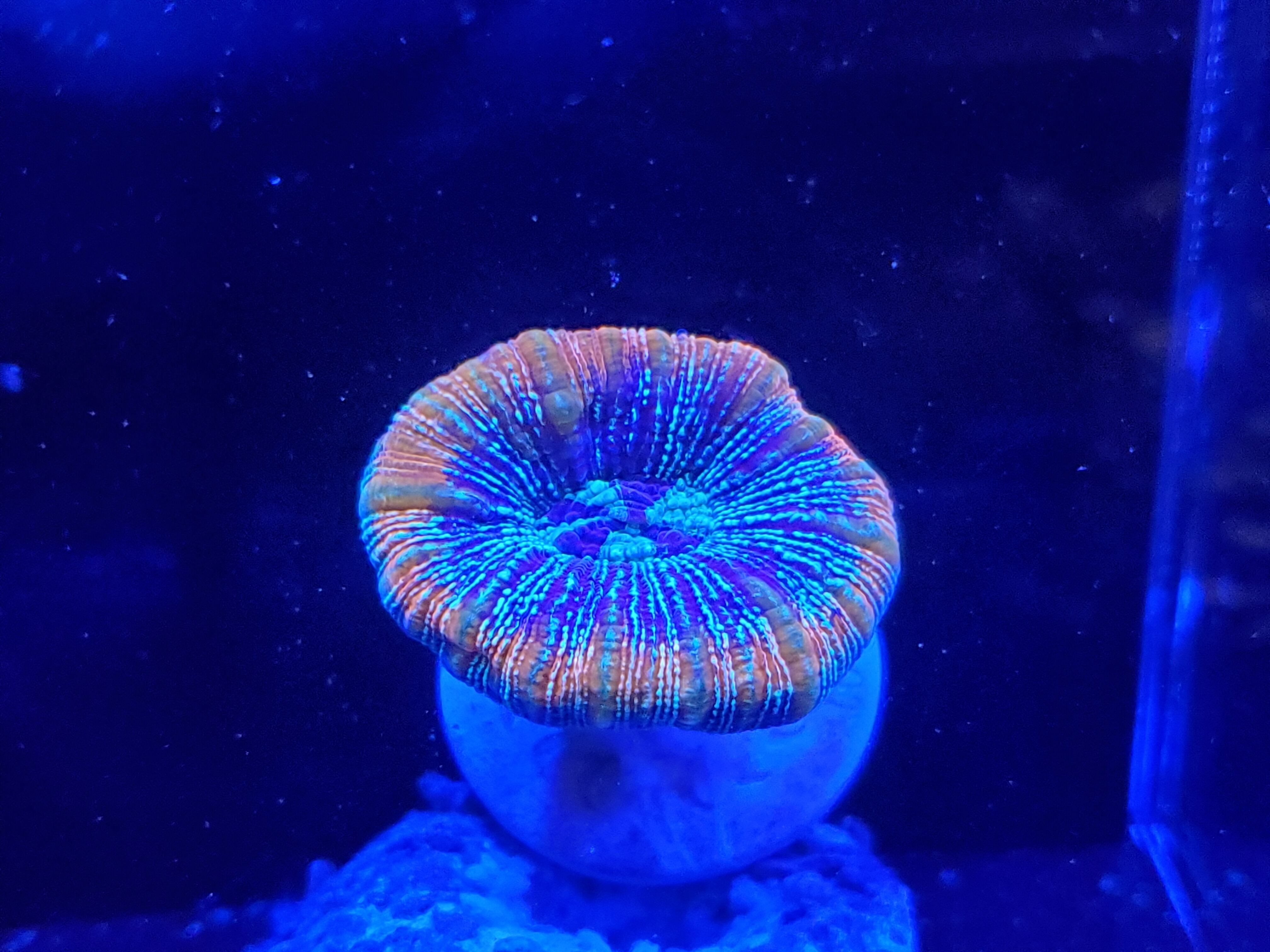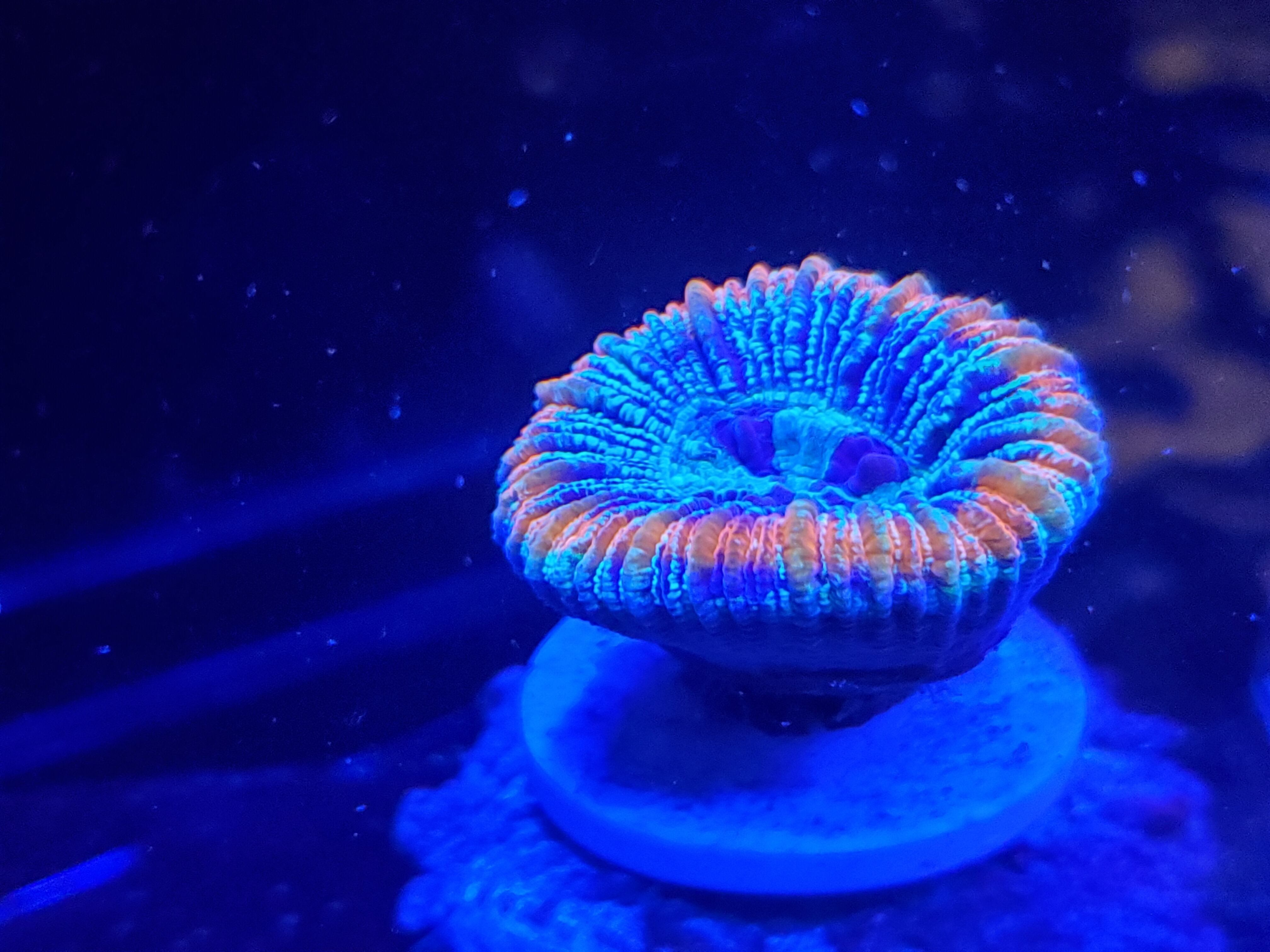 インドネシア産のオオバナサンゴは、色やパターンの個体差が激しく「一期一会」の出会いが魅力です。この4〜5cmサイズは成長の変化も観察しやすく、サンゴ飼育の醍醐味を凝縮したような1個体です。